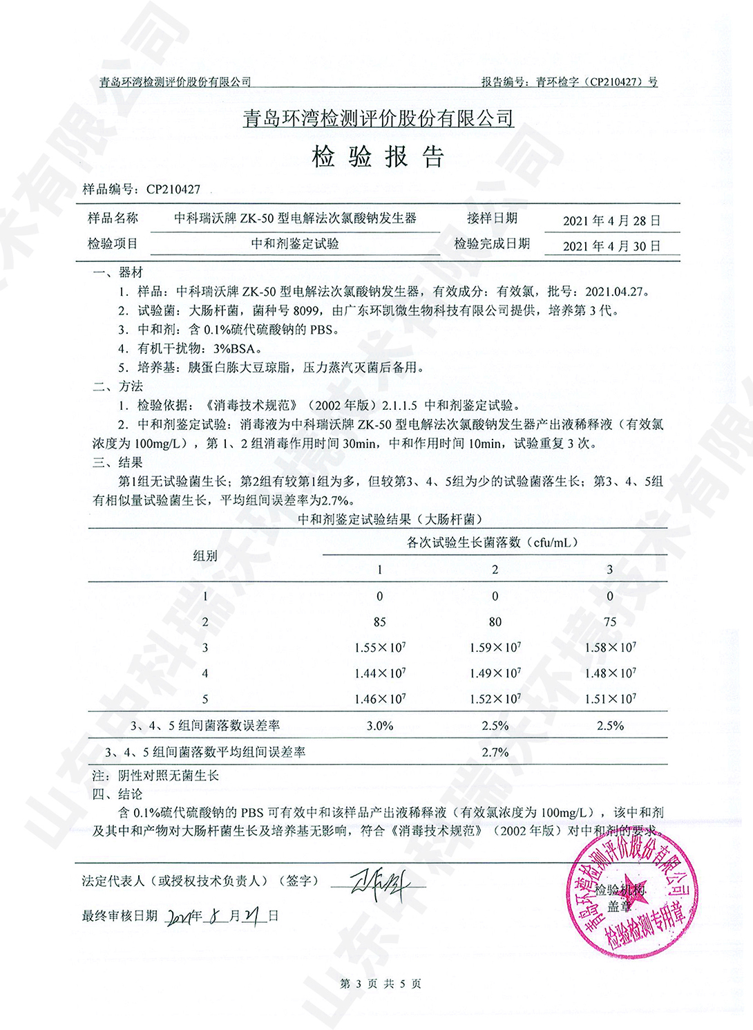 醫療污水處理設備檢測報告~次氯酸鈉消毒